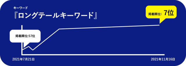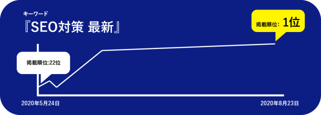 「キーワードの種類」や「競合サイトの強弱」「貴社のサイト状況」などによって、上位表示できる期間は異なります。無料診断にて、おおよその期間を提示することも可能ですので、まずは一度お問い合わせください。